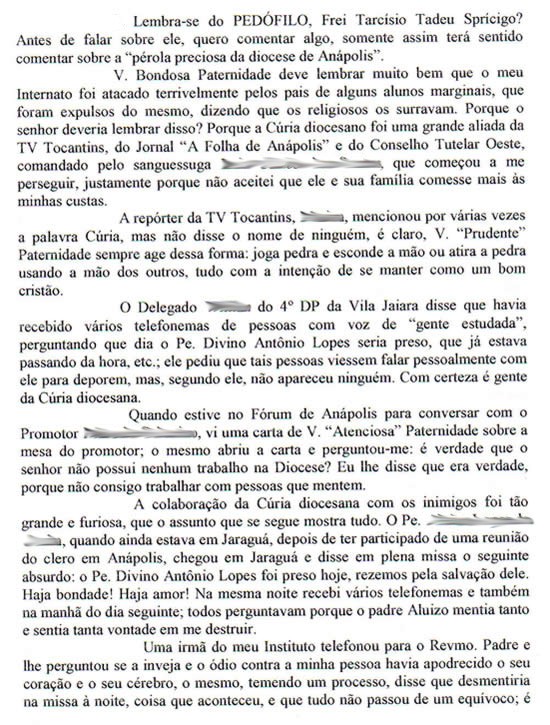 com o nome do nosso padre na boca; carta pornográfica de alguém do