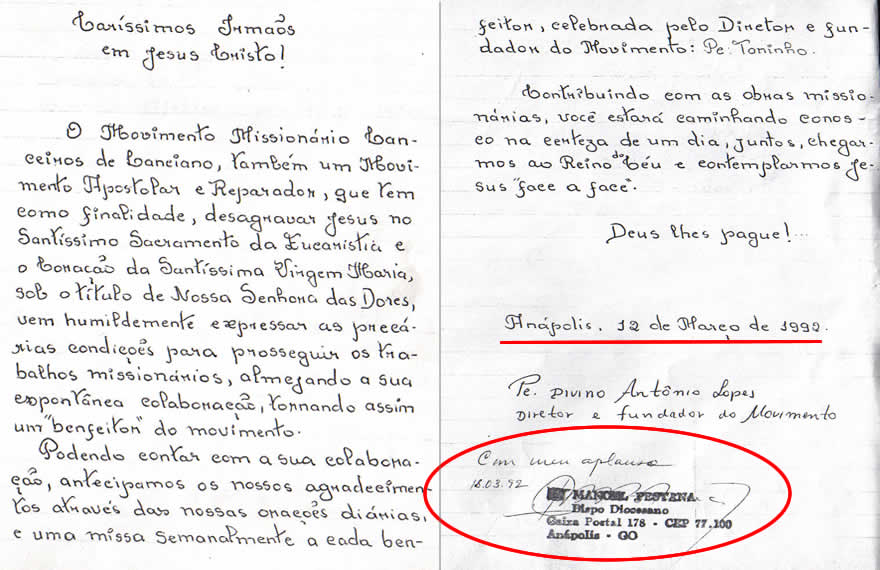 O senhor Bispo Dom Manoel Pestana Filho aplaudiu o nosso trabalho com os benfeitores em 1992.