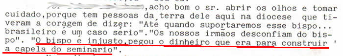 por telefone; o bispo se exaltou tanto que dias depois