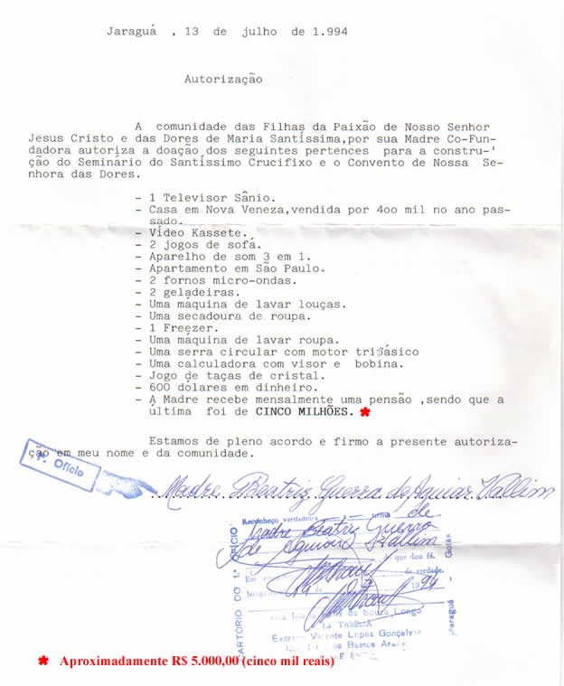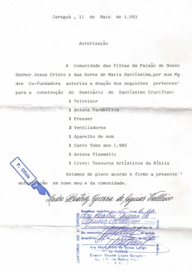 papel com o timbre da Cúria Diocesana. Penso eu, que