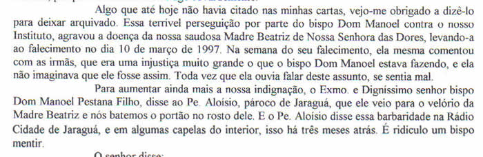 Dom Manoel em 01 de julho de 1996 (trecho abaixo).