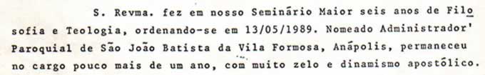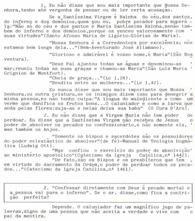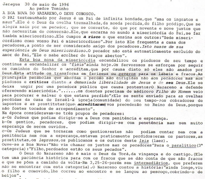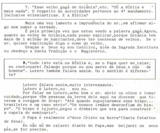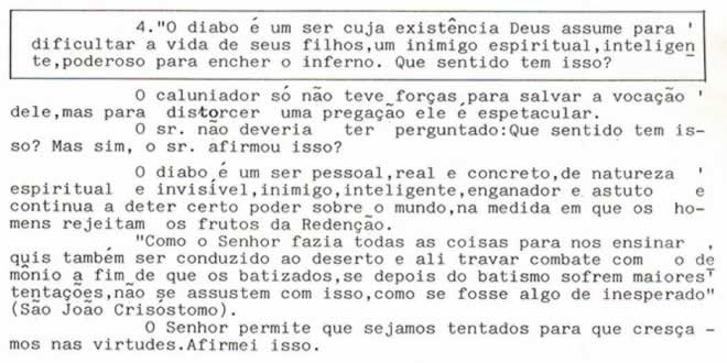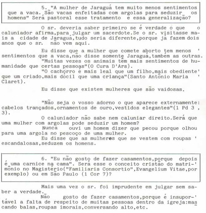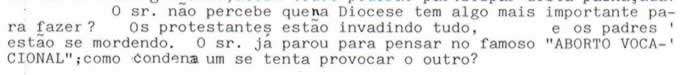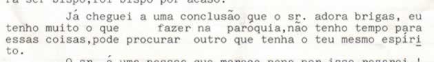 1995, sobre as provocações que recebia do Bispo Dom Manoel através