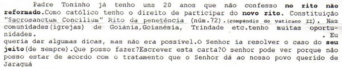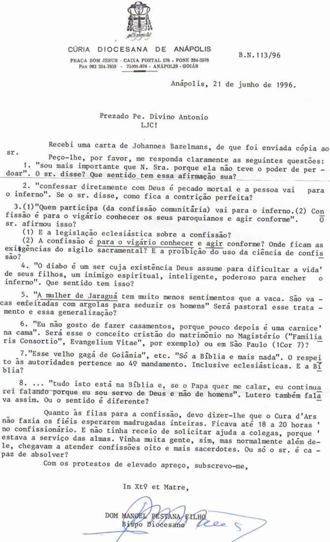 carta (trecho abaixo) a Dom Manoel Pestana Filho: