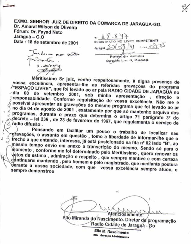 PUBLICAMENTE em um programa na Rádio Cidade de Jaraguá-GO.