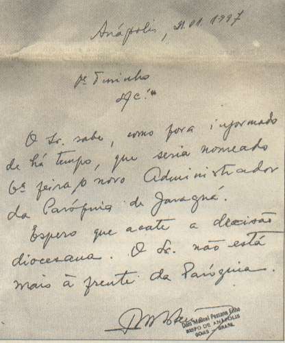 nenhuma paróquia, principalmente a da cidade de Jaraguá-GO. Ele já